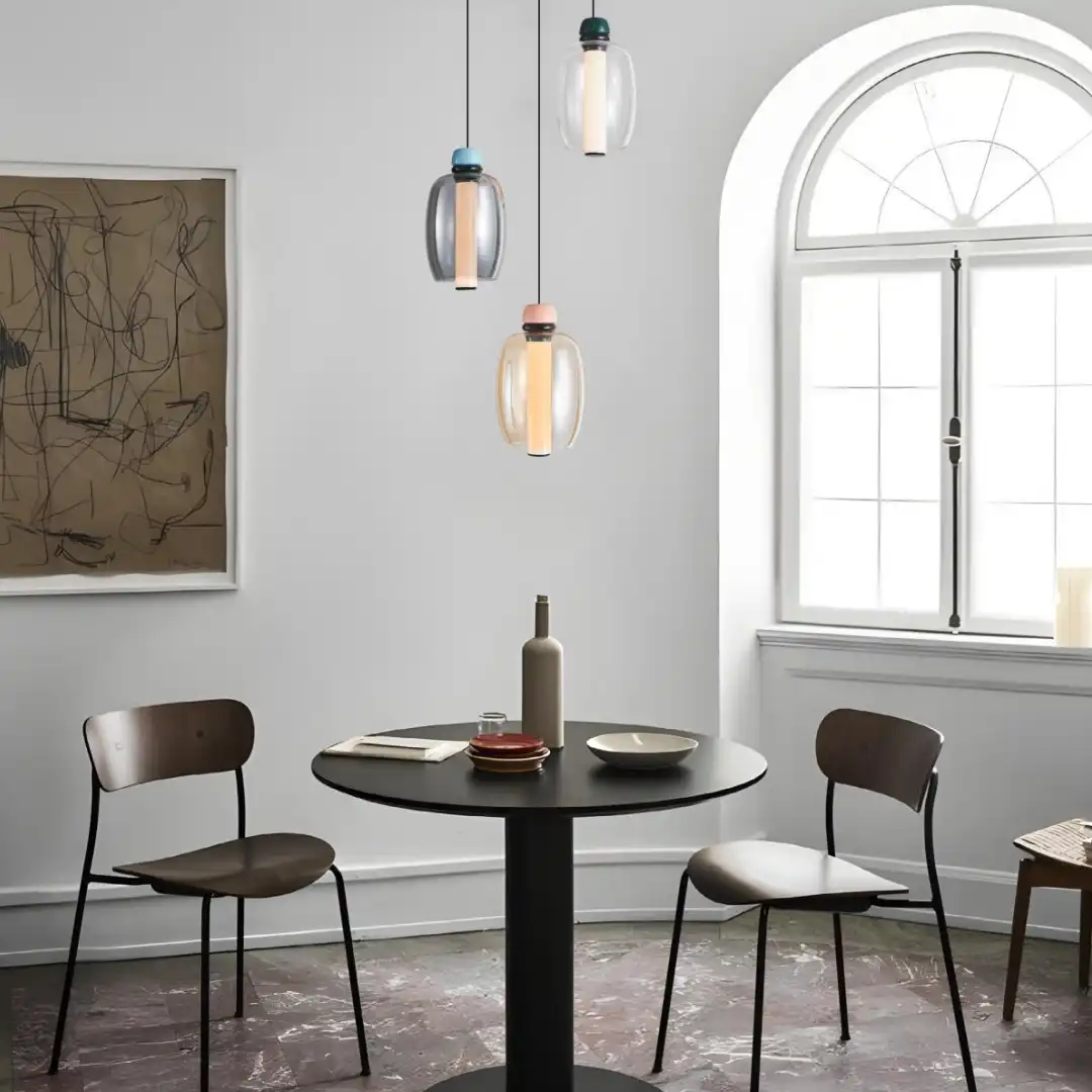 Pink + Amber, Blue + Smoke Gray, Green + Clear glass