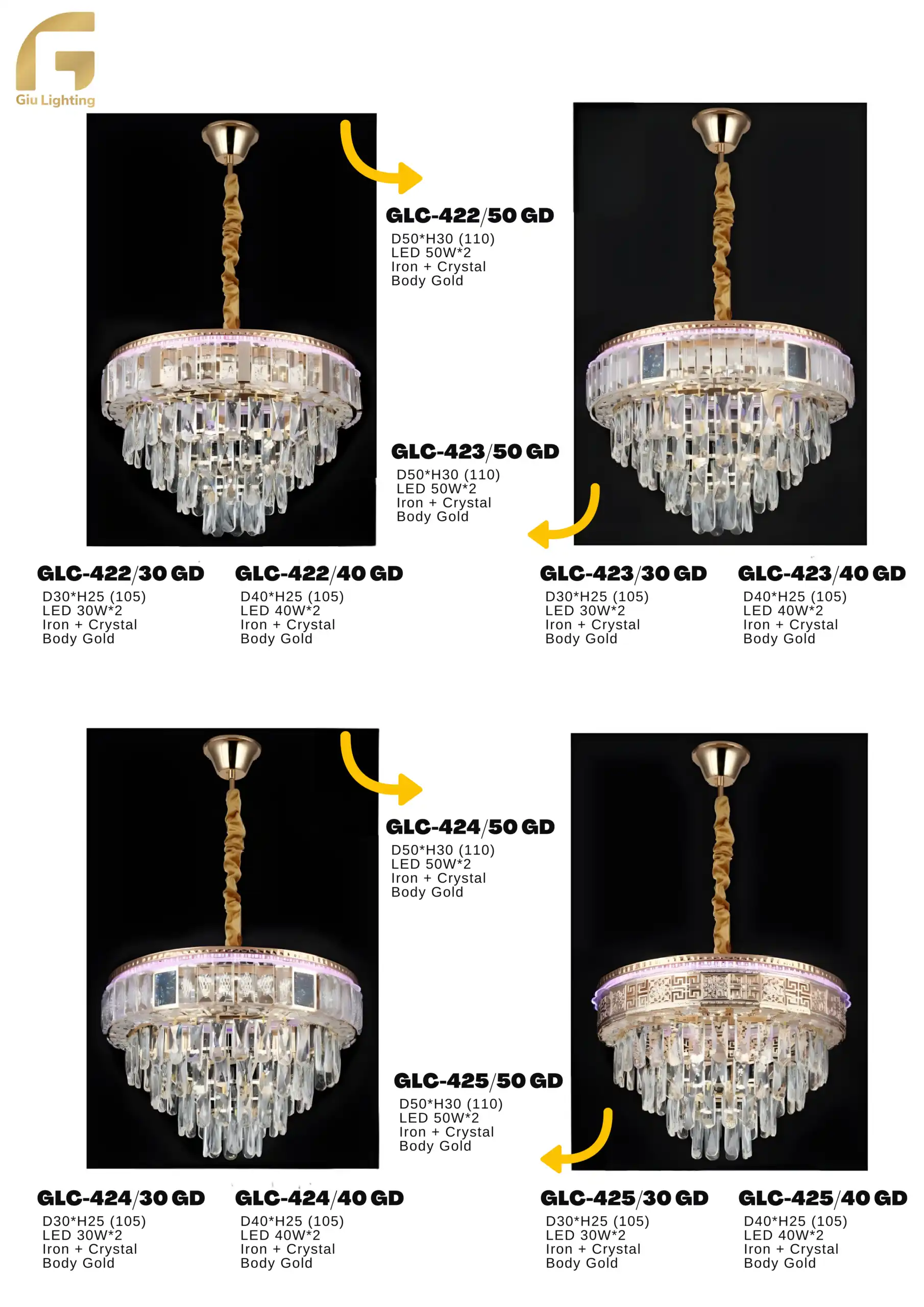 | Pilihan Tipe | GLC-422/50 GD, GLC-422/40 GD, GLC-422/30 GD, GLC-423/50 GD, GLC-423/40 GD, GLC-423/30 GD, GLC-424/50 GD, GLC-424/40 GD, GLC-424/30 GD, GLC-425/50 GD, GLC-425/40 GD, GLC-425/30 GD |