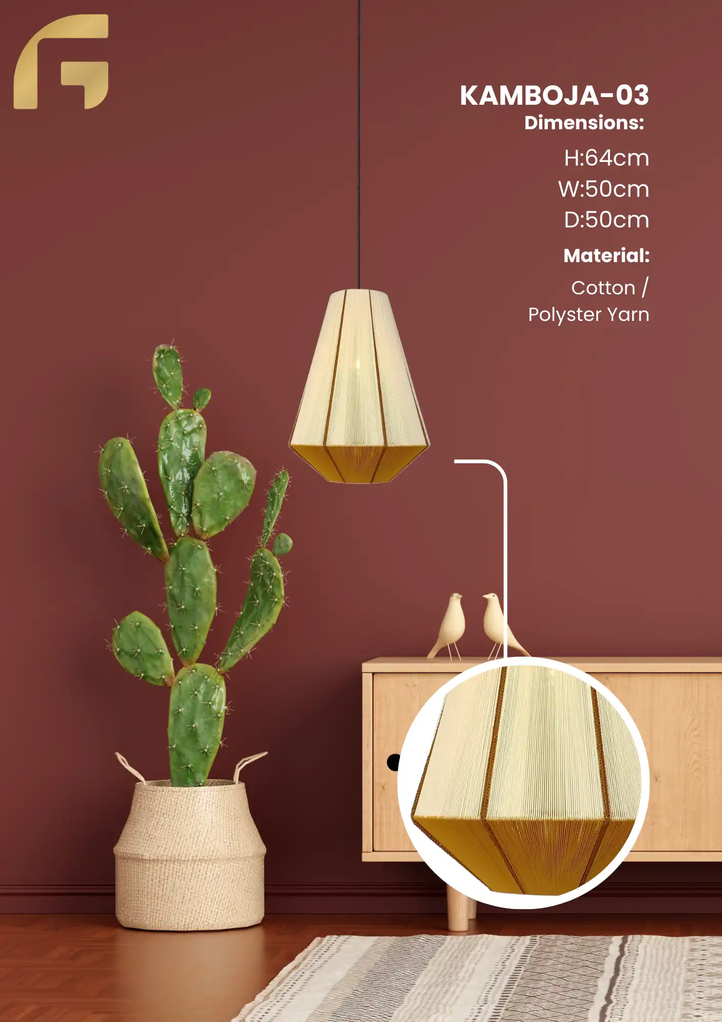 Care & Maintenance : The Lamp is composed mainly of cotton yarn. It is a handmade piece and cleaning is not advised unless absolutely necessary if cleaning is required, do not use alcohol or any other solvents or detergents, only a dry brush.